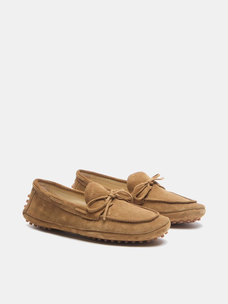 Driver tie-detailed croc-effect leather loafers Chocolate
