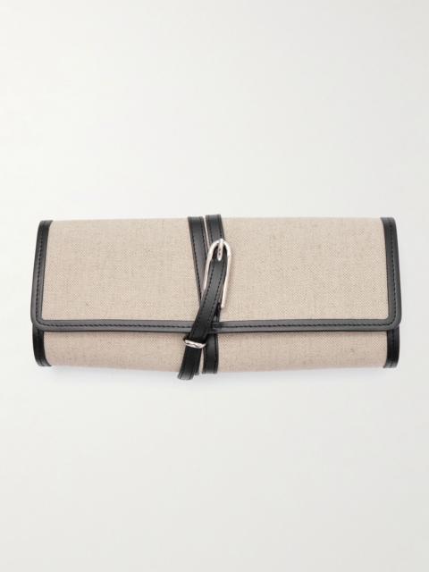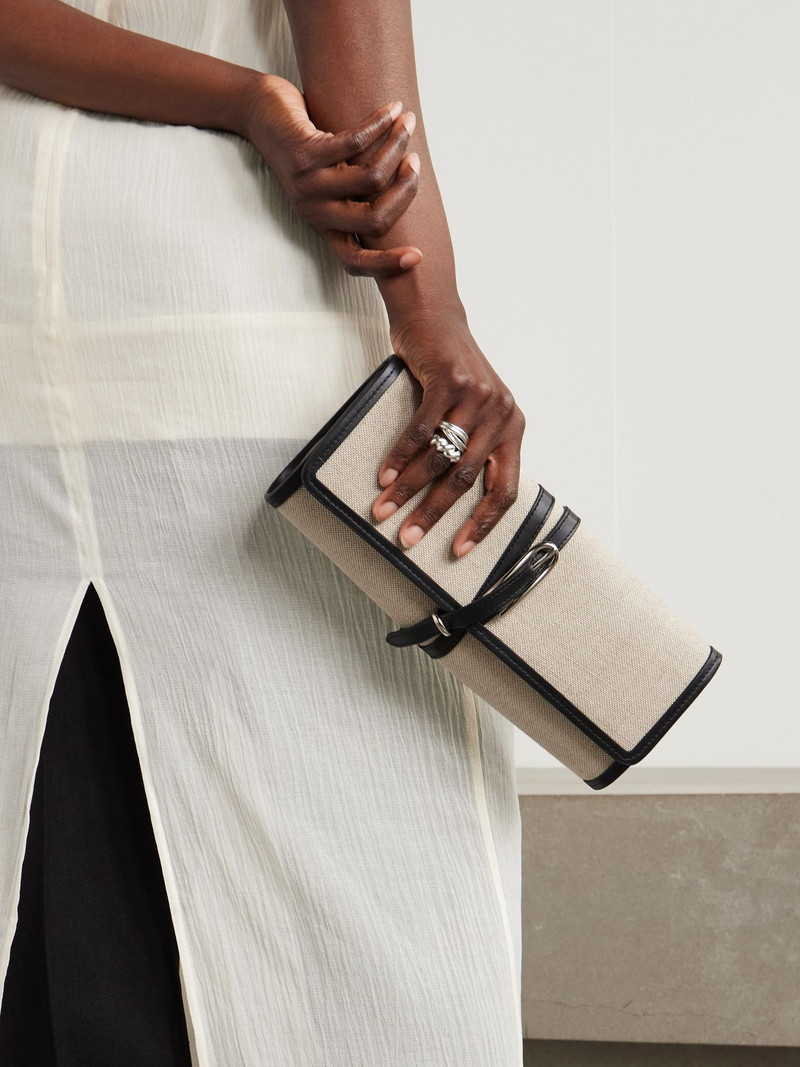 Belted leather-trimmed canvas clutch Off-white