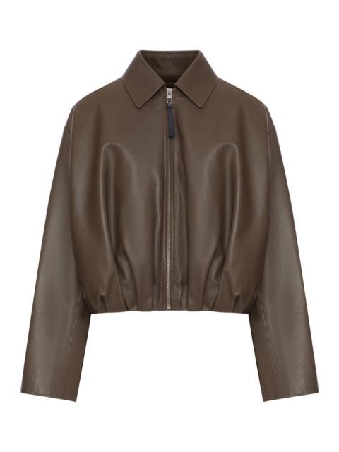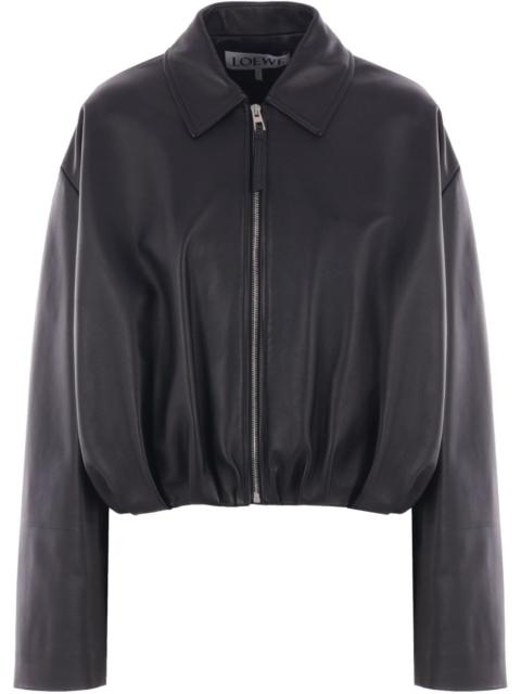 Loewe Brown Leather Zip-Up Jacket with Collared Design