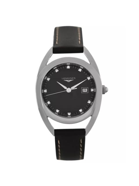 Pre-owned Longines Oposition Round Quartz Diamond Black Dial Ladies Watch L3.125.0.89.6