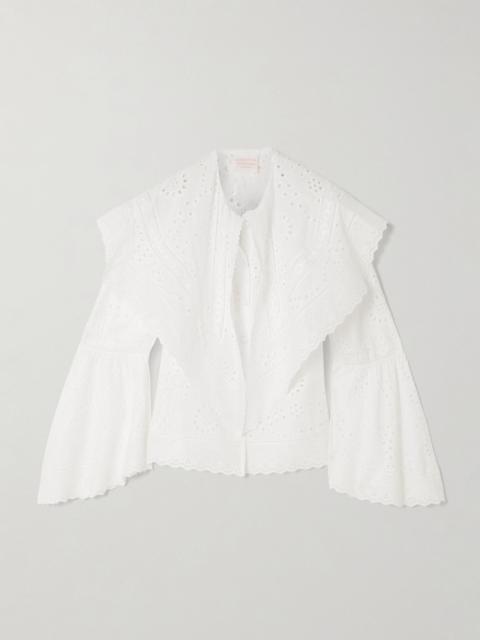 - LORETTA CAPONIAzzurra broderie anglaise cotton-poplin blouse White