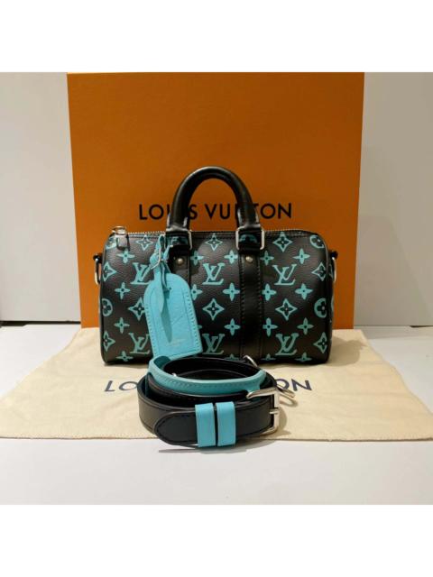 Louis Vuitton LV Keepall 25, Black with Tiffany Blue monogram, with microchip.