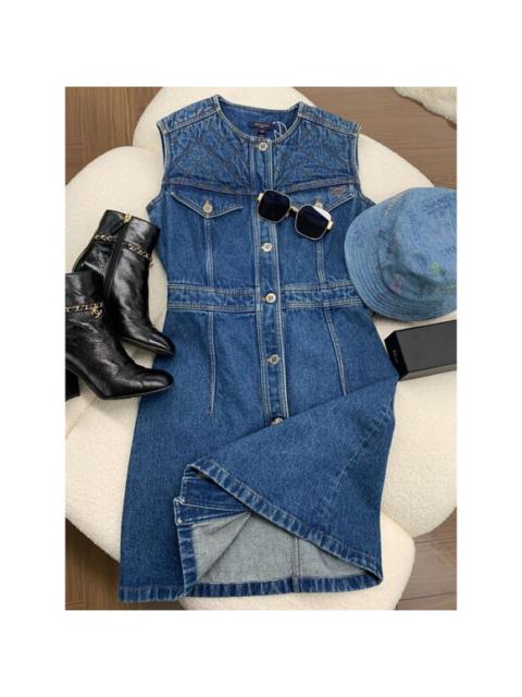 Louis Vuitton Quilted Denim Sleeveless Button-Up Dress With Pockets & Stitch Det