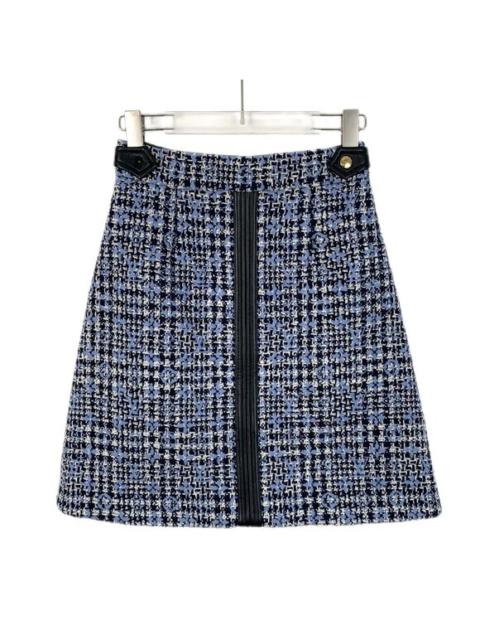 Louis Vuitton Paris Tweed A-Line Skirt With Leather Accents & Gold Button Detail