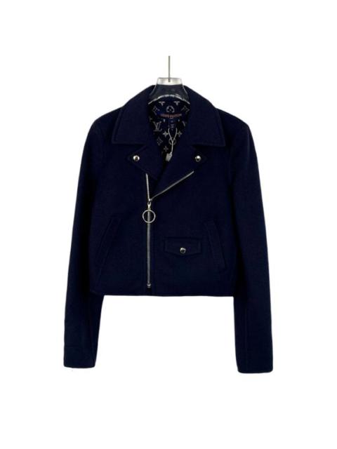 Louis Vuitton Womens Wool Lapel Zip-Up Jacket Dark Blue Size 36 XS Made In Italy