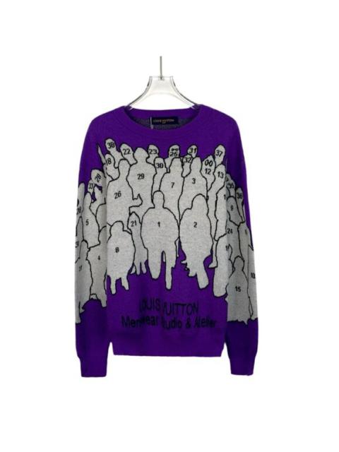 Louis Vuitton Purple Figure Logo Jacquard Wool Long Sleeve Sweater Size M