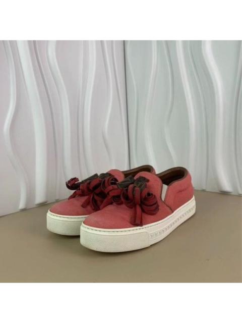 Louis Vuitton Womens Slip-On Loafers Wine Red Canvas Leather Floral Accents Size