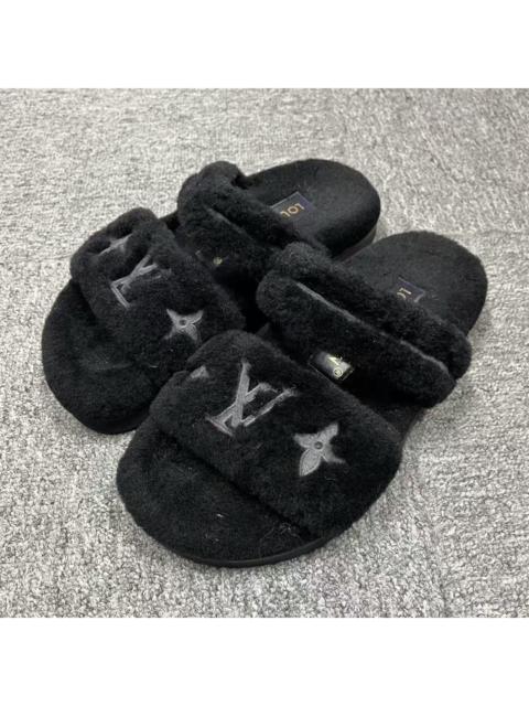 Louis Vuitton latest black sheepskin round toe open toe flip flops