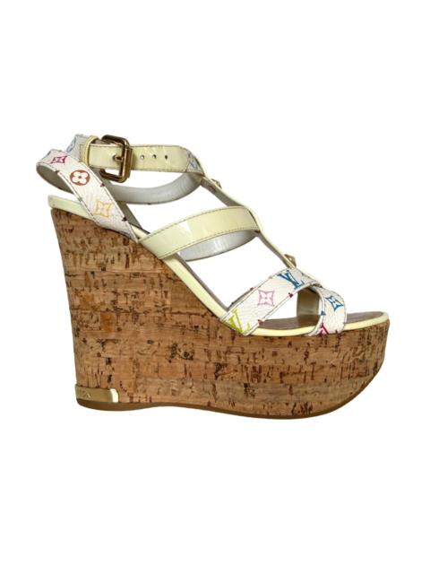 White Monogram Multicolor Wedge