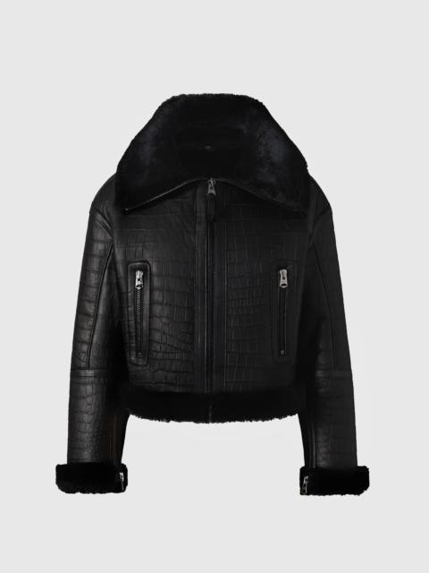 - MACKAGEMAXOU Croc Embossed Oversized Shearling Jacket
