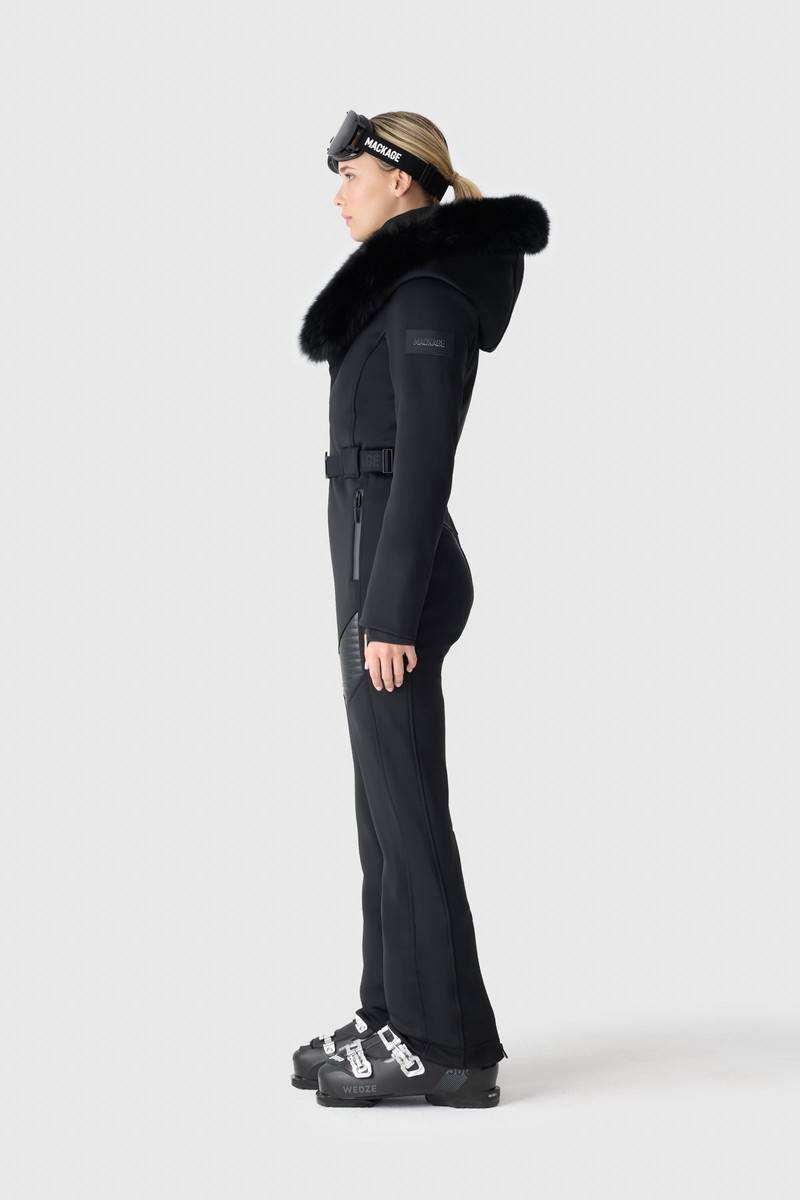 - MACKAGEELLE-ZR Bonded Fleece Ski Suit With Removable Fur-Trimmed Hood