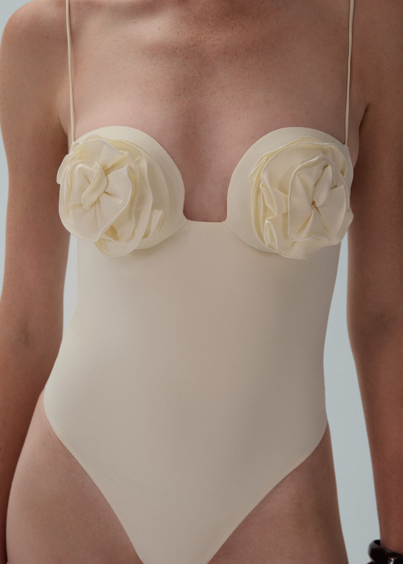 - MAGDA BUTRYM3D flower retro bustier swimsuit in cream