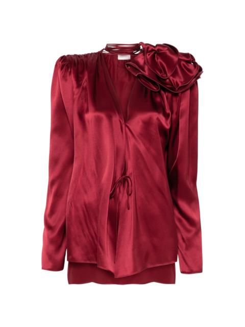 - MAGDA BUTRYMOne-shoulder floral-appliquéd ruched satin-jersey top Burgundy