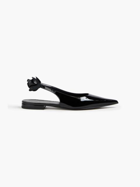 Floral-appliquéd patent-leather slingback point-toe flats