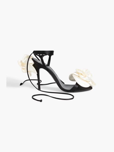 Floral-appliquéd satin sandals