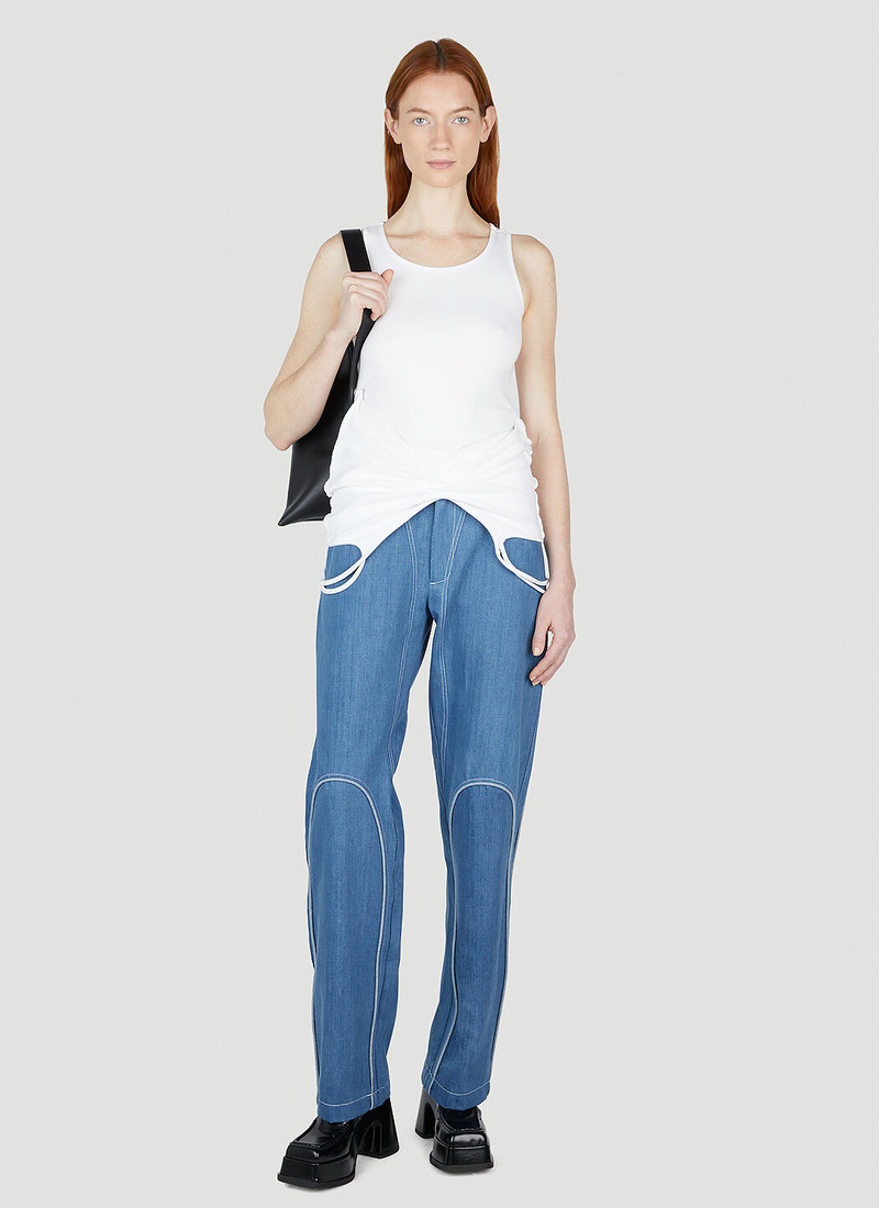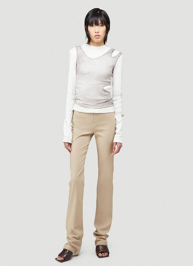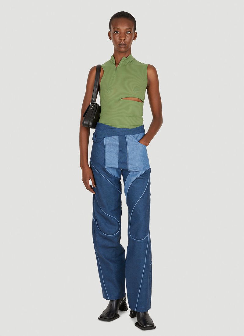 Mainline:RUS/Fr.CA/DE is a London-based collective redefining corporate-inspired ready-to-wear through a playful, sensual lens. Founded by Alexandra Vincent, Karl Felix, and Zarina Bekerova—whose country codes (Russia, French Canada, Germany) inspire the brand’s name—the label fosters cross-cultural dialogue. Sustainability is key, with pieces crafted from upcycled and deadstock fabrics. Asymmetrical motifs reinvent sport jackets and knitwear, while Lycra shapewear features concealed zip vents for comfort. Known for blending artistry and fashion, Mainline:RUS/Fr.CA/DE frequently collaborates with global creatives, offering unique visual experiences that reflect their ethos of bridging cultures and reimagining traditional dress codes with a modern, collective spirit.