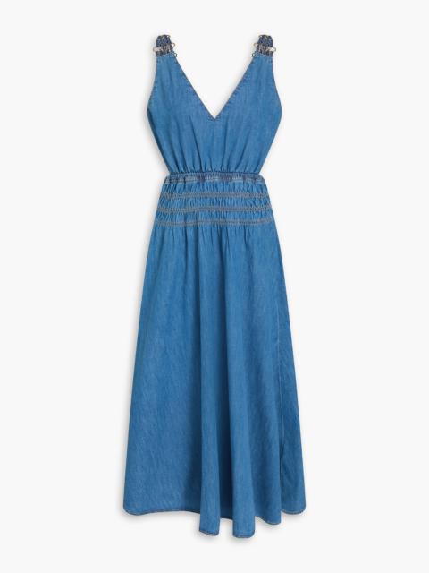 Off-the-shoulder polka-dot cotton-blend poplin midi dress
