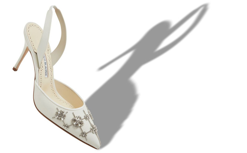 - Manolo BlahnikCream Crepe de Chine Slingback Pumps