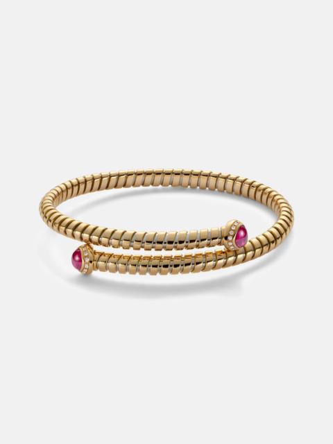Trisolina 18kt gold cuff bracelet with diamonds and emerald