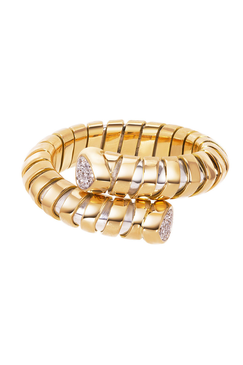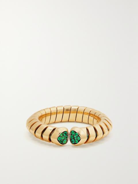Trisolina Bypass 18kt gold cuff bracelet with diamonds and chrysoprase