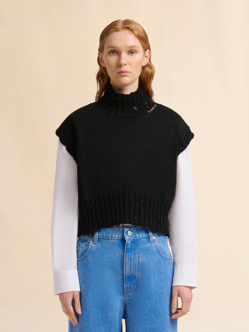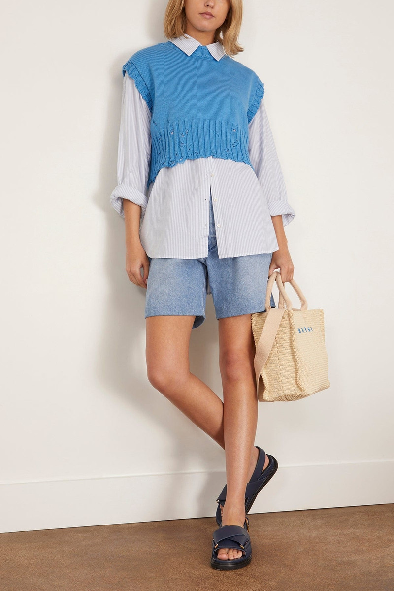 BLUE DISHEVELED MOULINÉ COTTON VEST