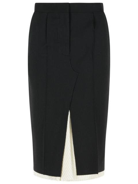 Marni Midi Skirt In Cool Black Virgin Wool With Exposed Lining Women