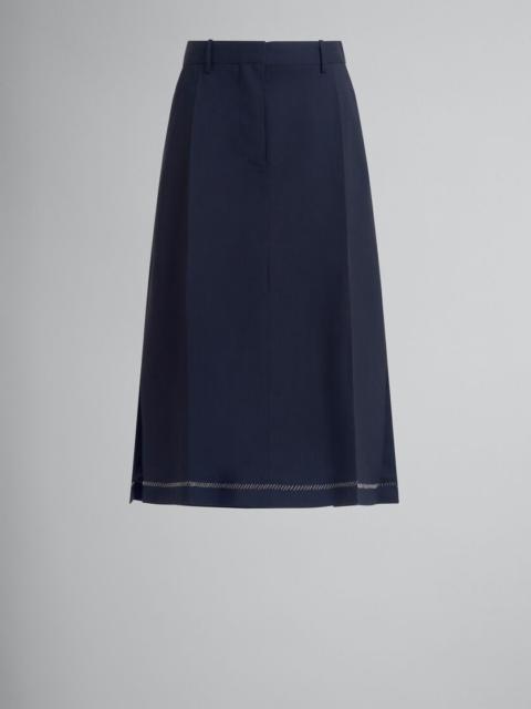 DEEP BLUE WOOL MIDI SKIRT WITH PRESSED PLEATS