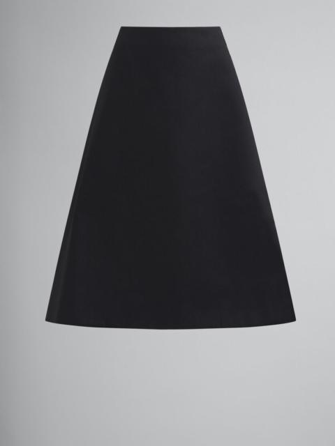 BLACK ORGANIC COTTON SATIN FLARED SKIRT