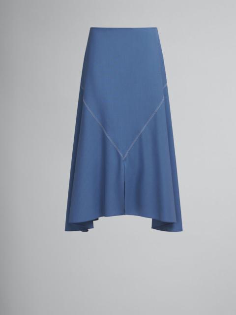 BLUE TROPICAL WOOL MIDI SKIRT WITH V DETAIL