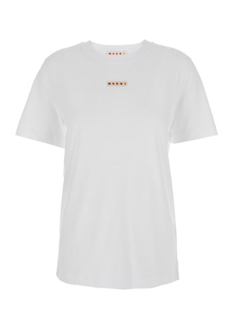 Marni Women White Crewneck T-Shirt With Logo Patch On The Front In Cotton Woman