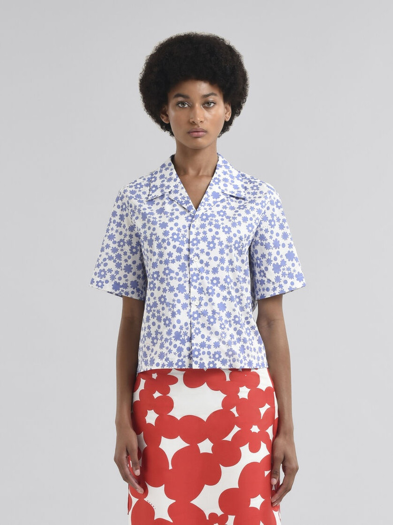 POPLIN BOWLING SHIRT WITH BLUE AND WHITE POP FIELDS MOTIF