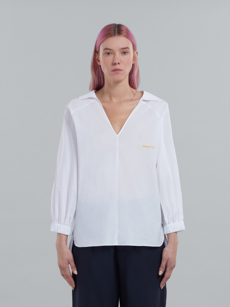 IVORY COTTON FLARED SHIRT WITH MARNI SYMBOL