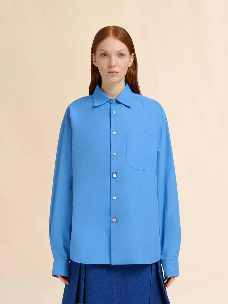 BLUE ORGANIC POPLIN SHIRT WITH MARNI MENDING