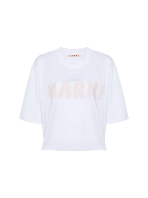 WHITE JERSEY COTTON T-SHIRT WITH CHECKED MARNI LOGO