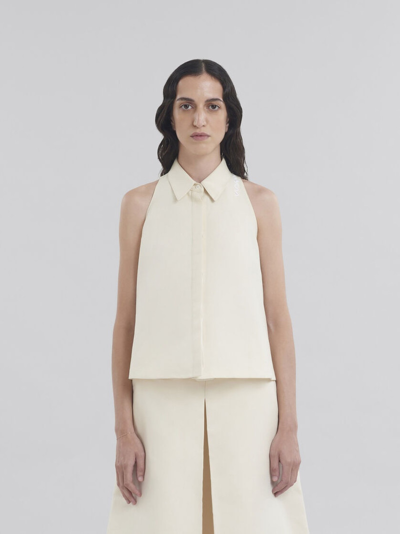 IVORY COTTON FLARED SHIRT WITH MARNI SYMBOL