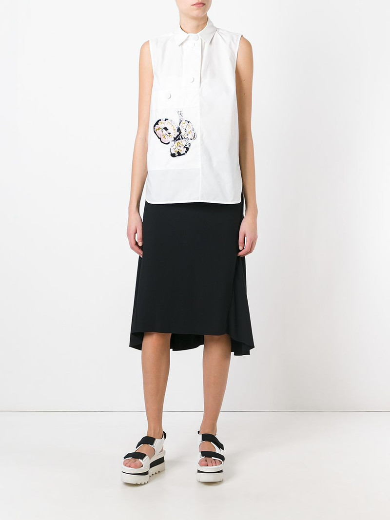 WHITE COTTON-VISCOSE BACK-TO-FRONT SHIRT TOP WITH DOTTY CHECK