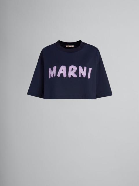 BLUE JERSEY T-SHIRT WITH BEADED MARNI LETTERING