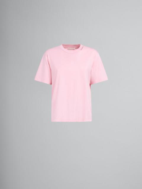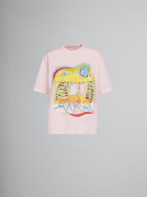 MARNI X NO VACANCY INN - LIGHT PEACH T-SHIRT IN BIO COTTON JERSEY WITH SNAKE LOGO PRINT