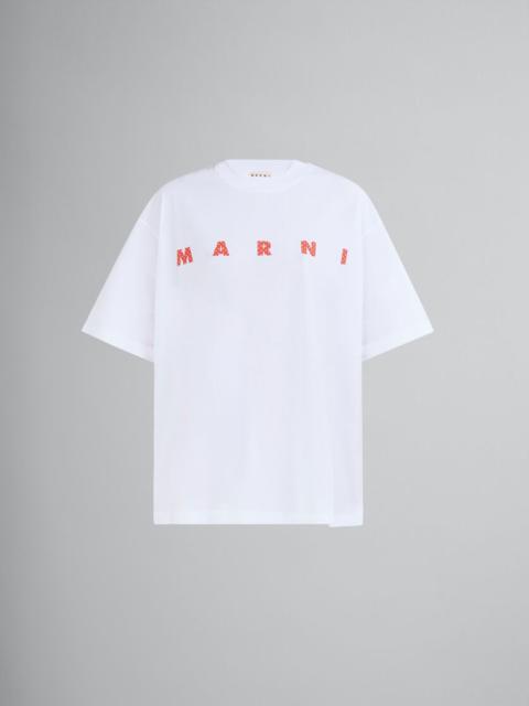 WHITE JERSEY T-SHIRT WITH BEADED MARNI LETTERING