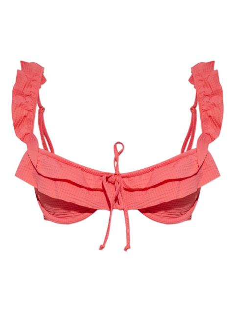 Antibes Scalloped Recycled-seersucker Bikini Top