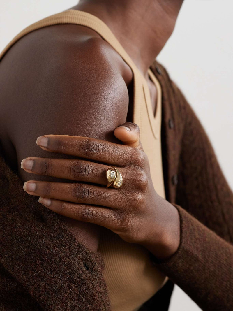 Slanted 14-karat gold, topaz and diamond ring Light blue