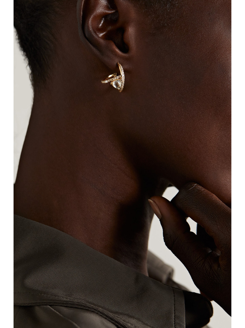 Wave 14kt gold (585/1000) huggie earrings with diamonds