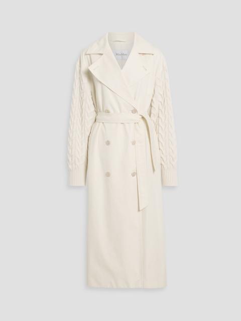 Cicladi cable knit-paneled wool- blend twill trench coat