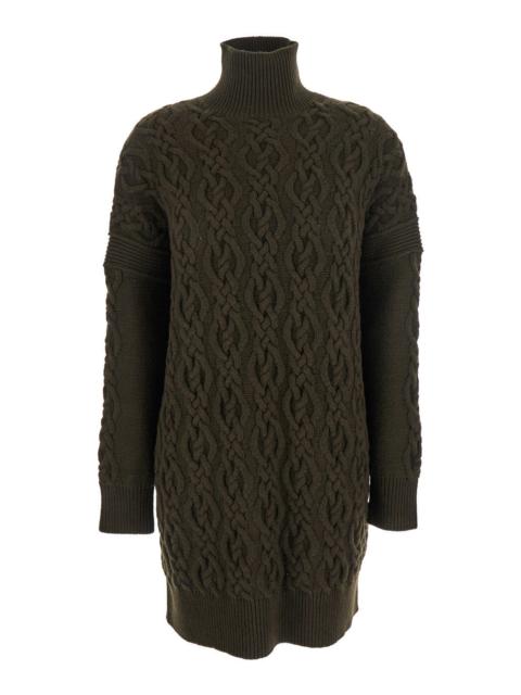 Max Mara Women Green High Neck Dress With All-Over Inlays In Wool Blend Woman