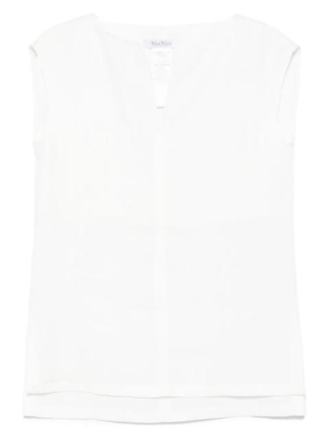Max Mara Women 'Osiride' White Shirt With V-Neck And Logo Patch On The Front In Linen And Silk Blend