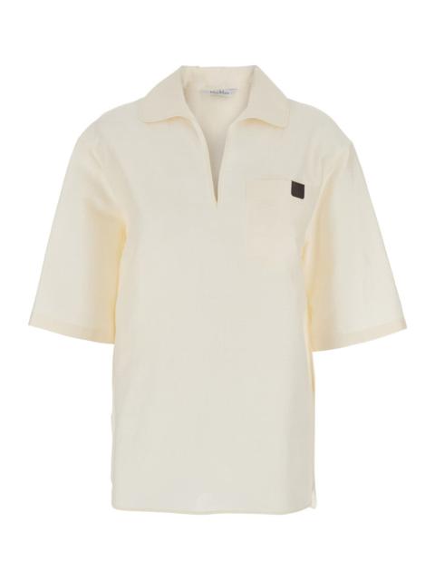 Max Mara Women 'Osiride' White Shirt With V-Neck And Logo Patch On The Front In Linen And Silk Blend