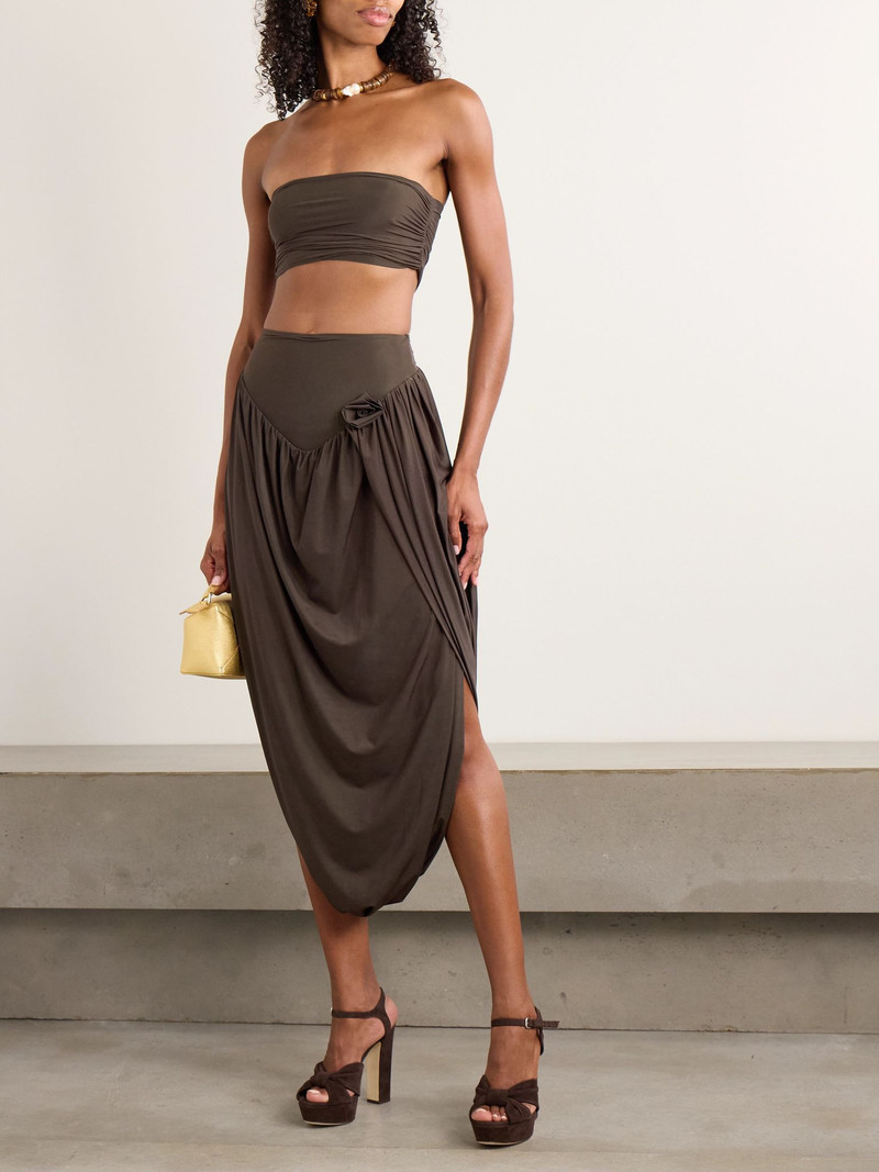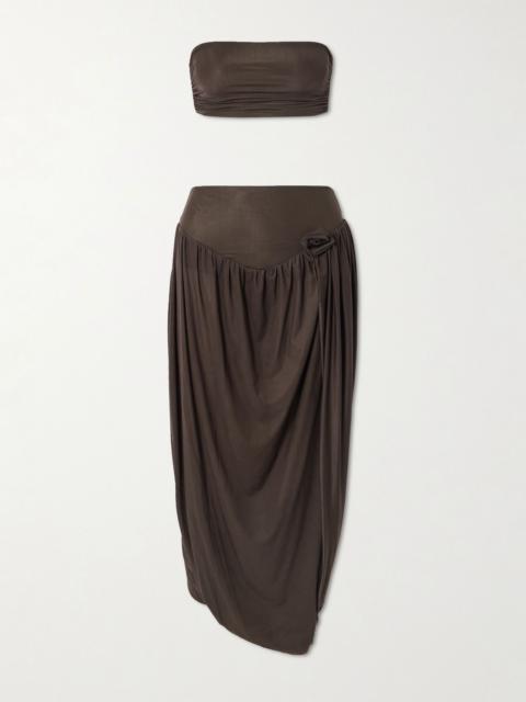 - MAYGEL CORONELNoriega strapless twisted draped stretch-jersey bandeau and skirt set Chocolate