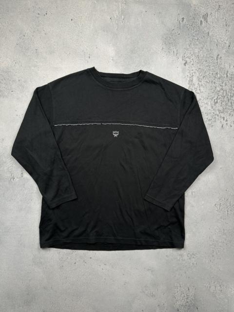 Vintage MCM Italy Black Rhinestone Logo Long Sleeve Tee Rare