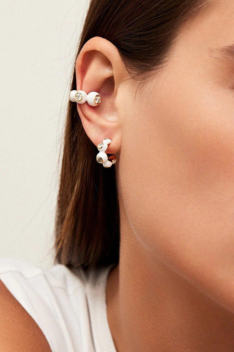 White Audrey Diamond Huggie Hoop Earrings