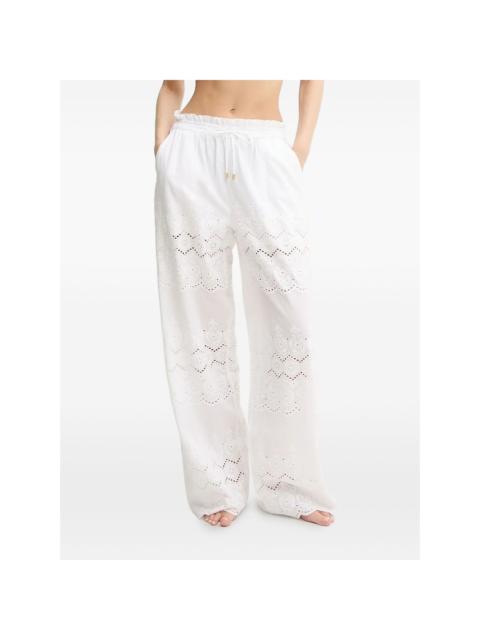 Lula embroidered cotton wide-leg pants